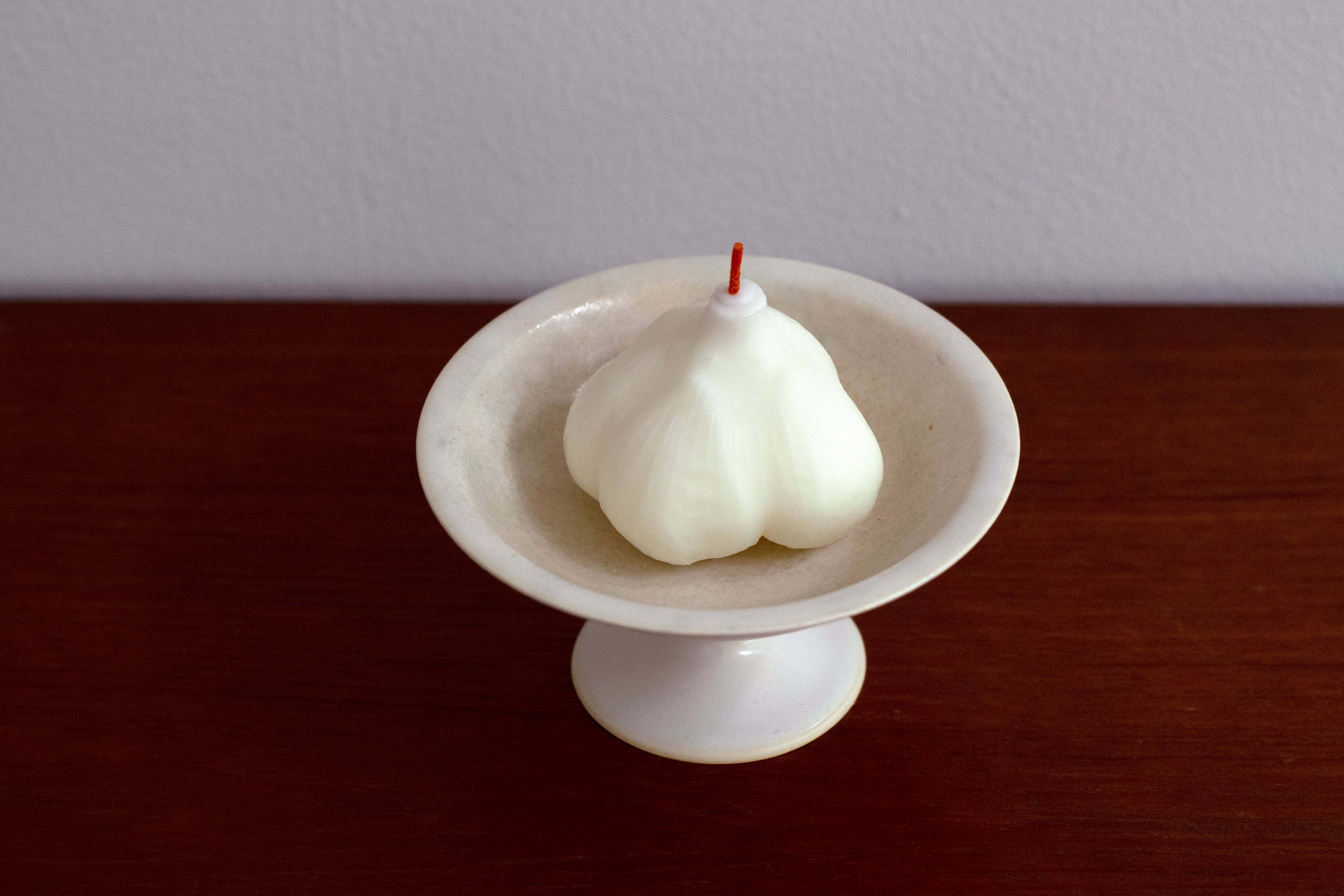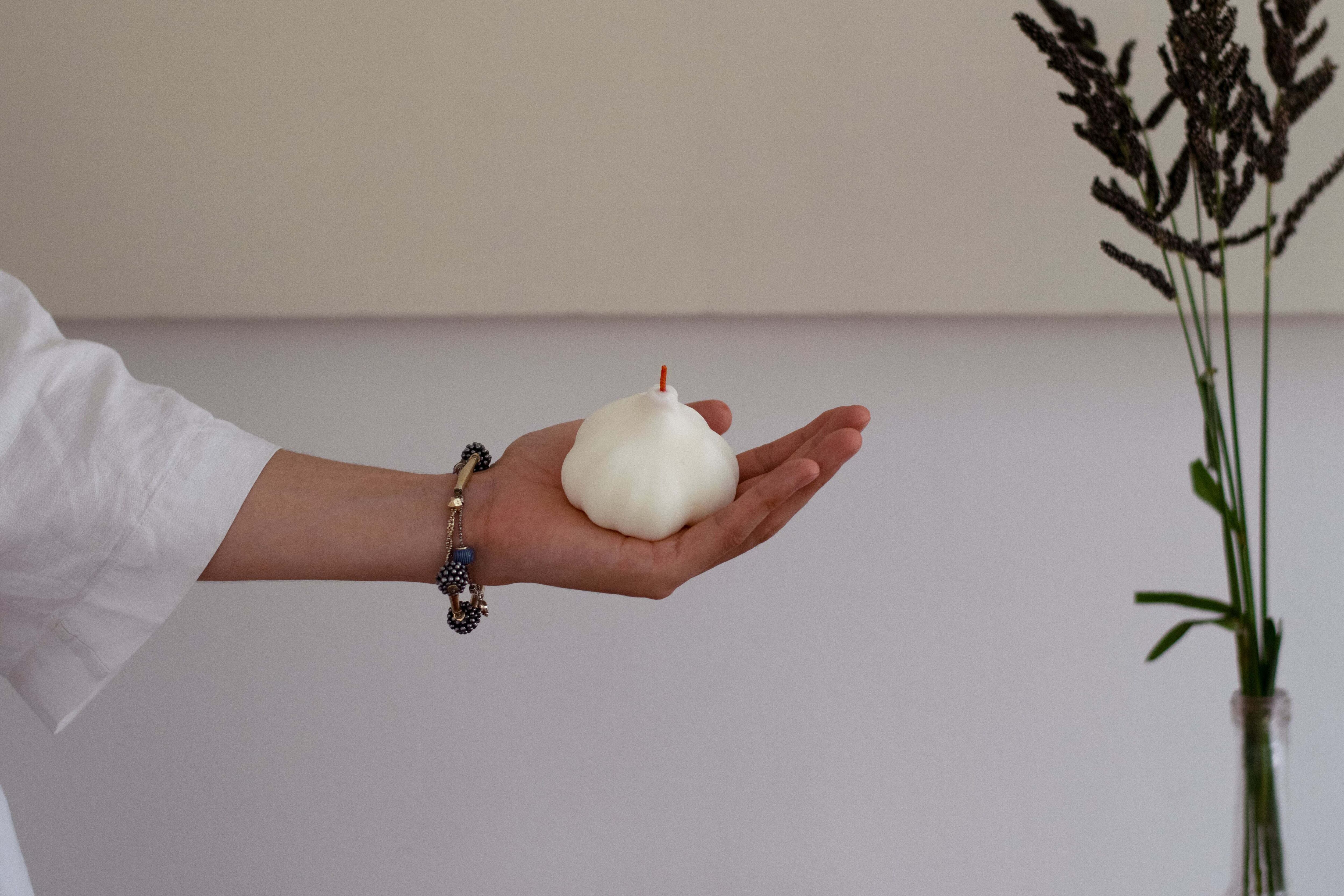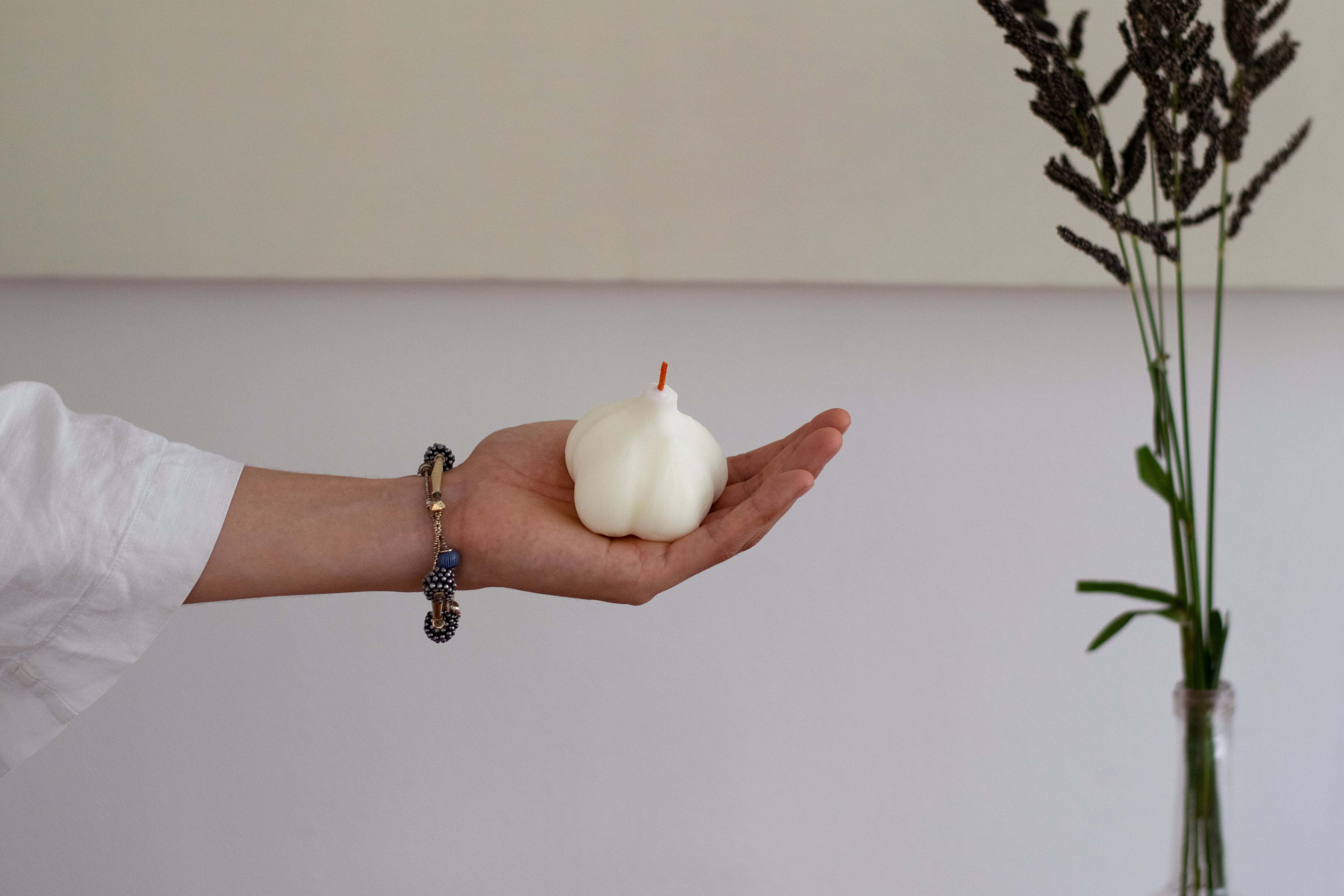 自然由来のソイワックスとミツロウを用いた、にんにく型のクラフトキャンドルになります。(※匂いはつけておらず、ニンニクの匂いもしません)