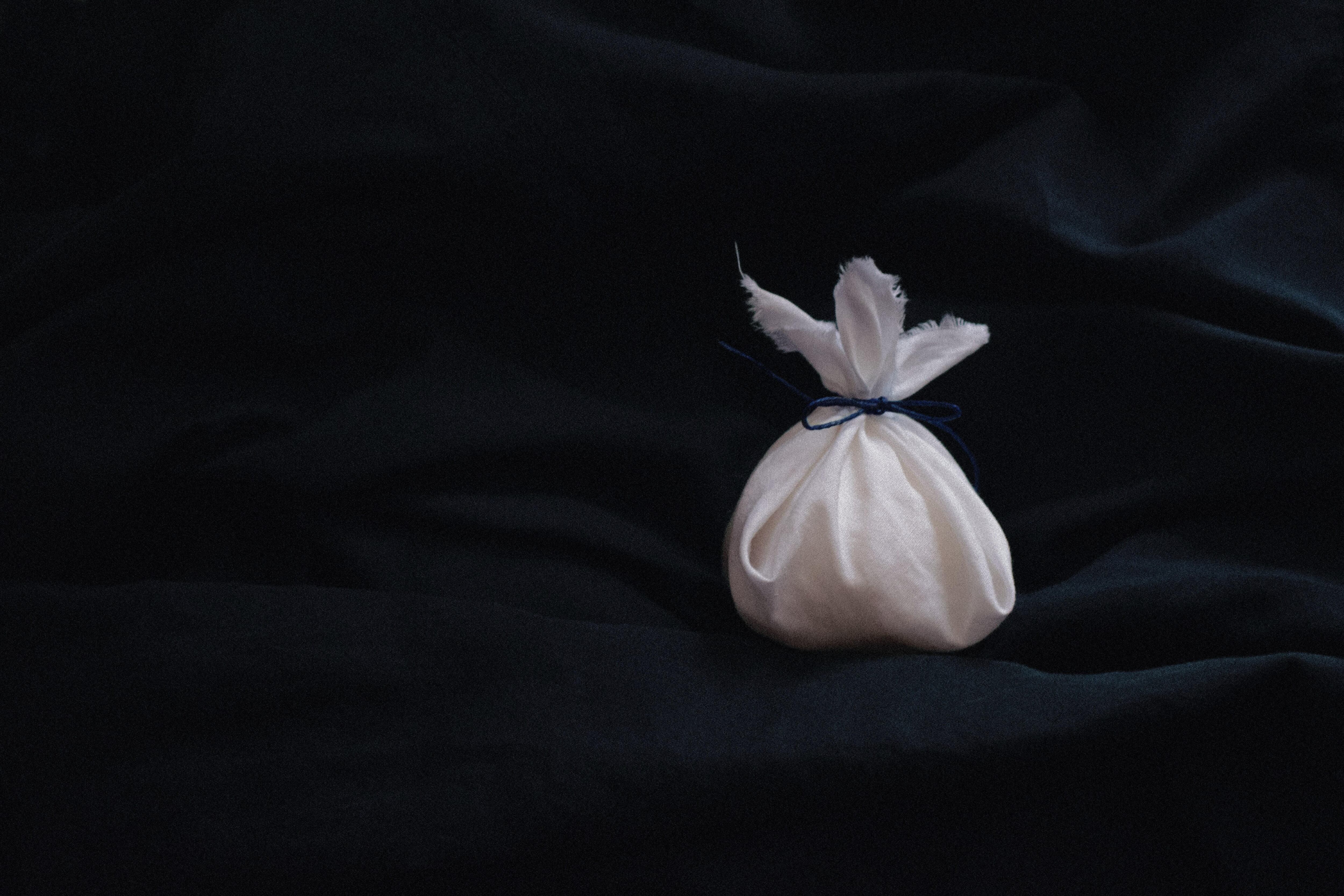 オーガニックコットン製の巾着にお入れし、お取り扱いの説明書付きでお届けします。