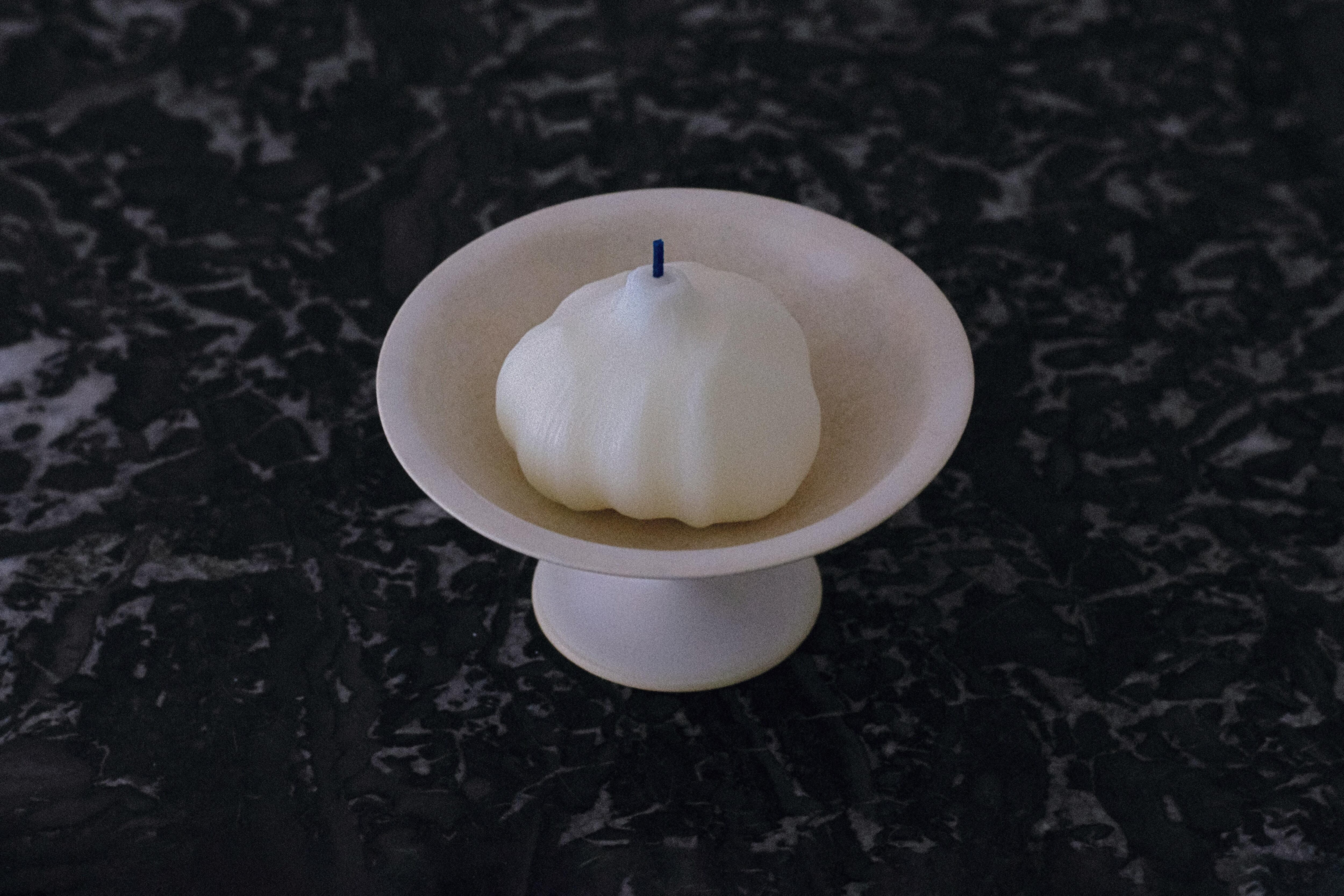 10個限定でお作りしてます。芯がネイビーブルーのにんにくキャンドル です。