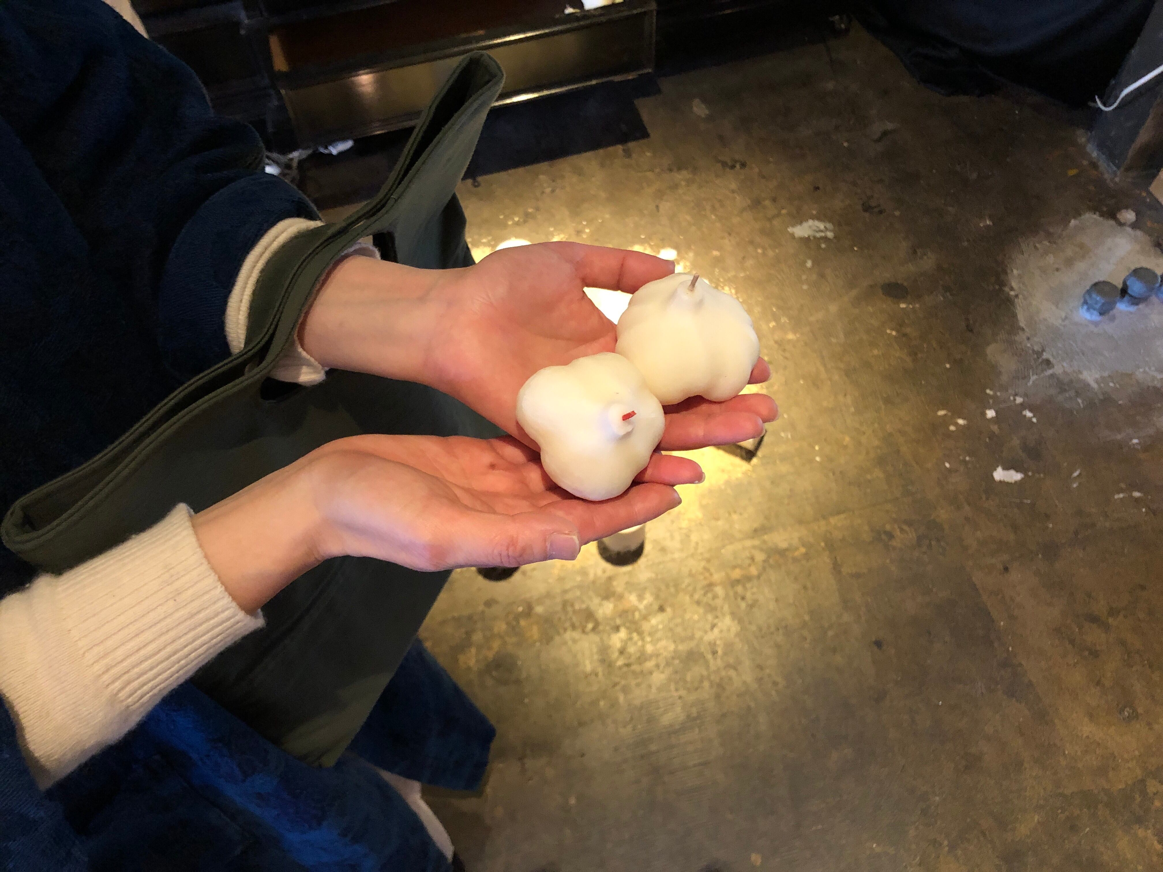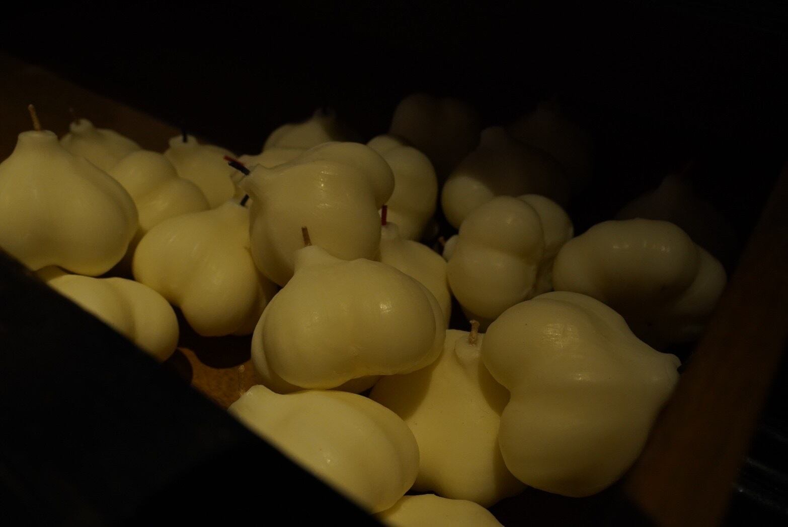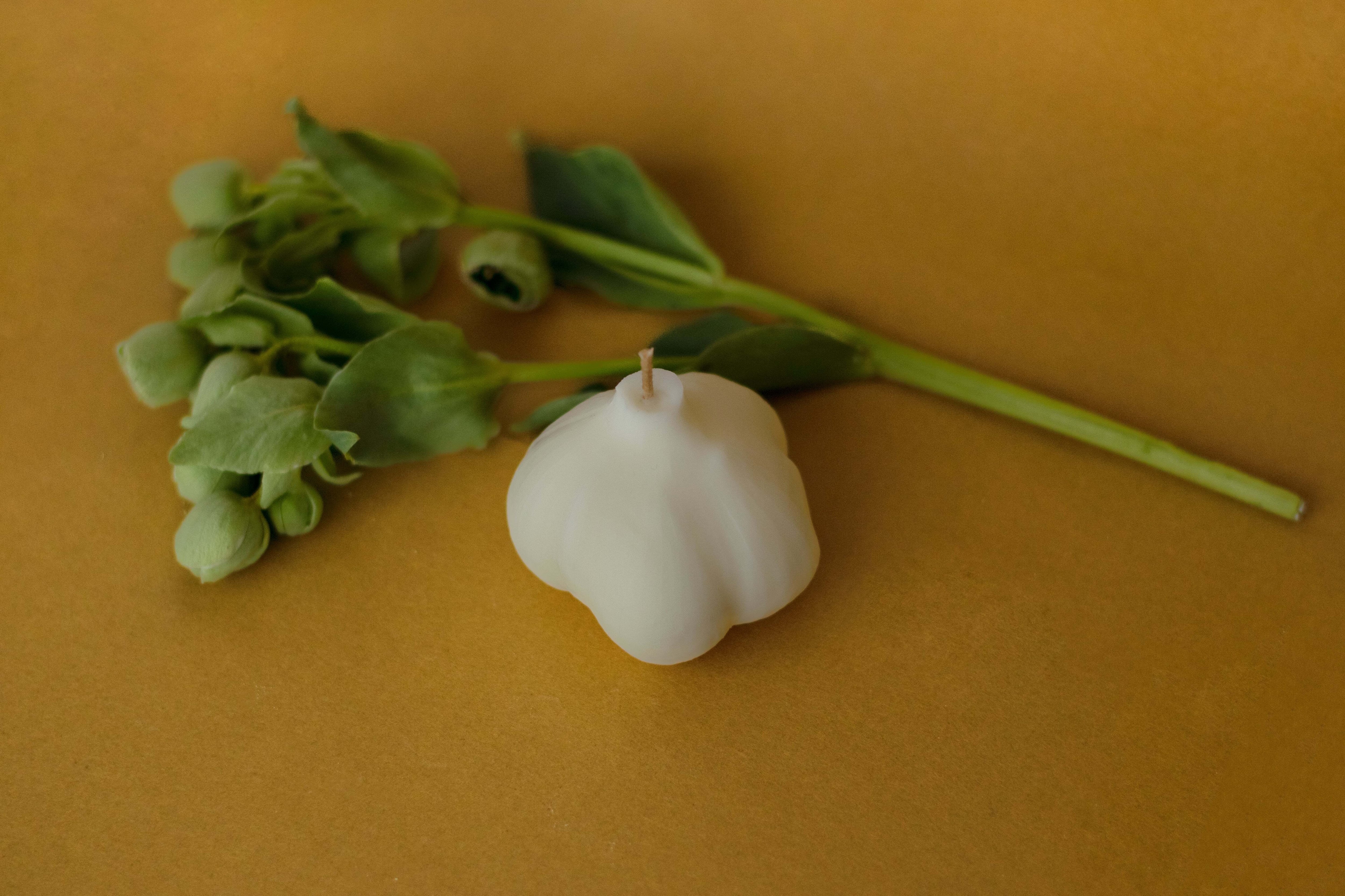 ArkaToni定番のにんにく型のクラフトキャンドルのニューカラー、ブラウンバージョンになります。(※匂いはつけておらず、ニンニクの匂いもしません)