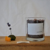鎮静効果があるウッディノートの香りがベースで、天然由来の精油、ソイワックス、ミツロウを使用しています。