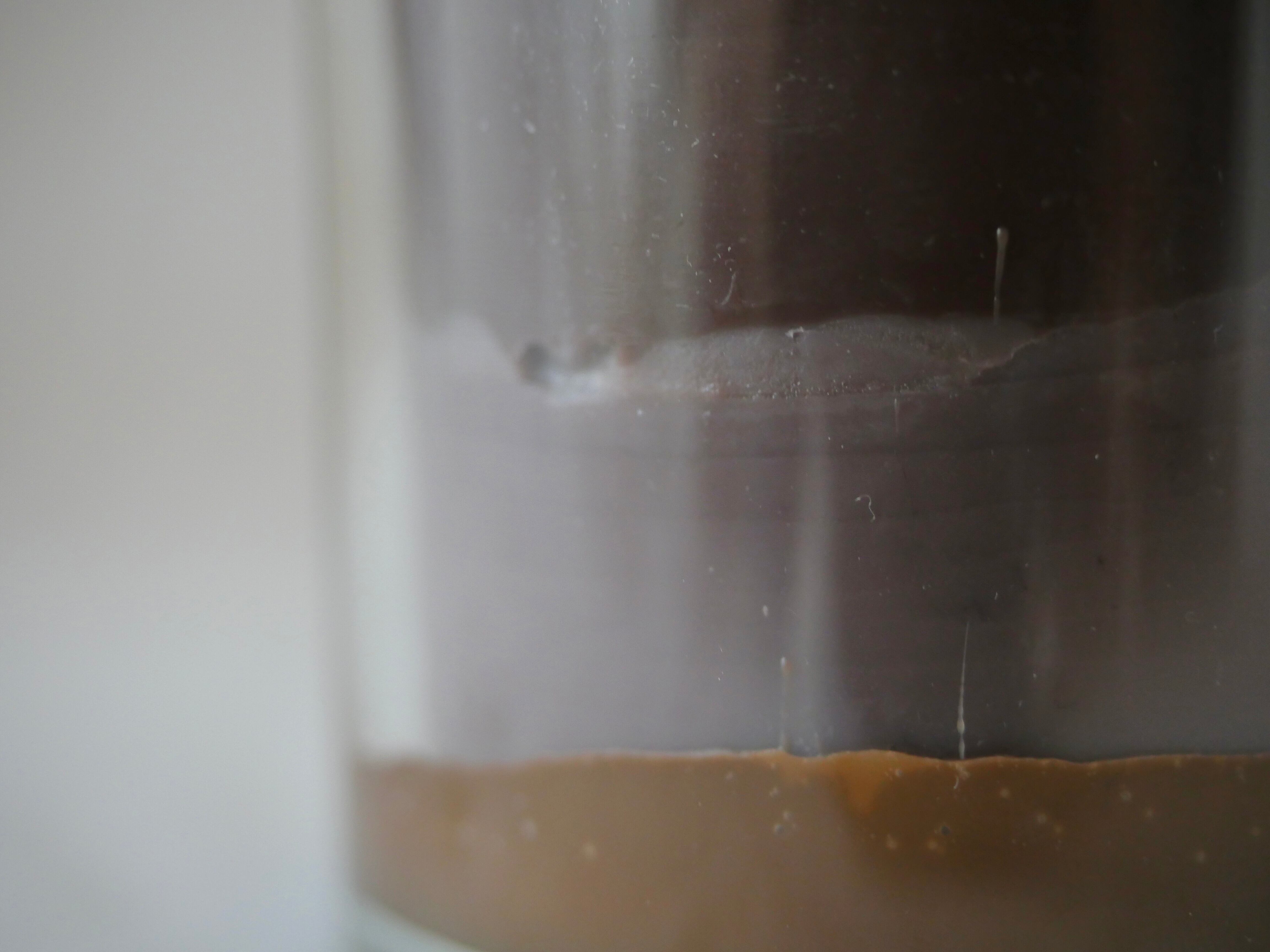 地層のように香りは2層に分かれていて、火が進み蝋が