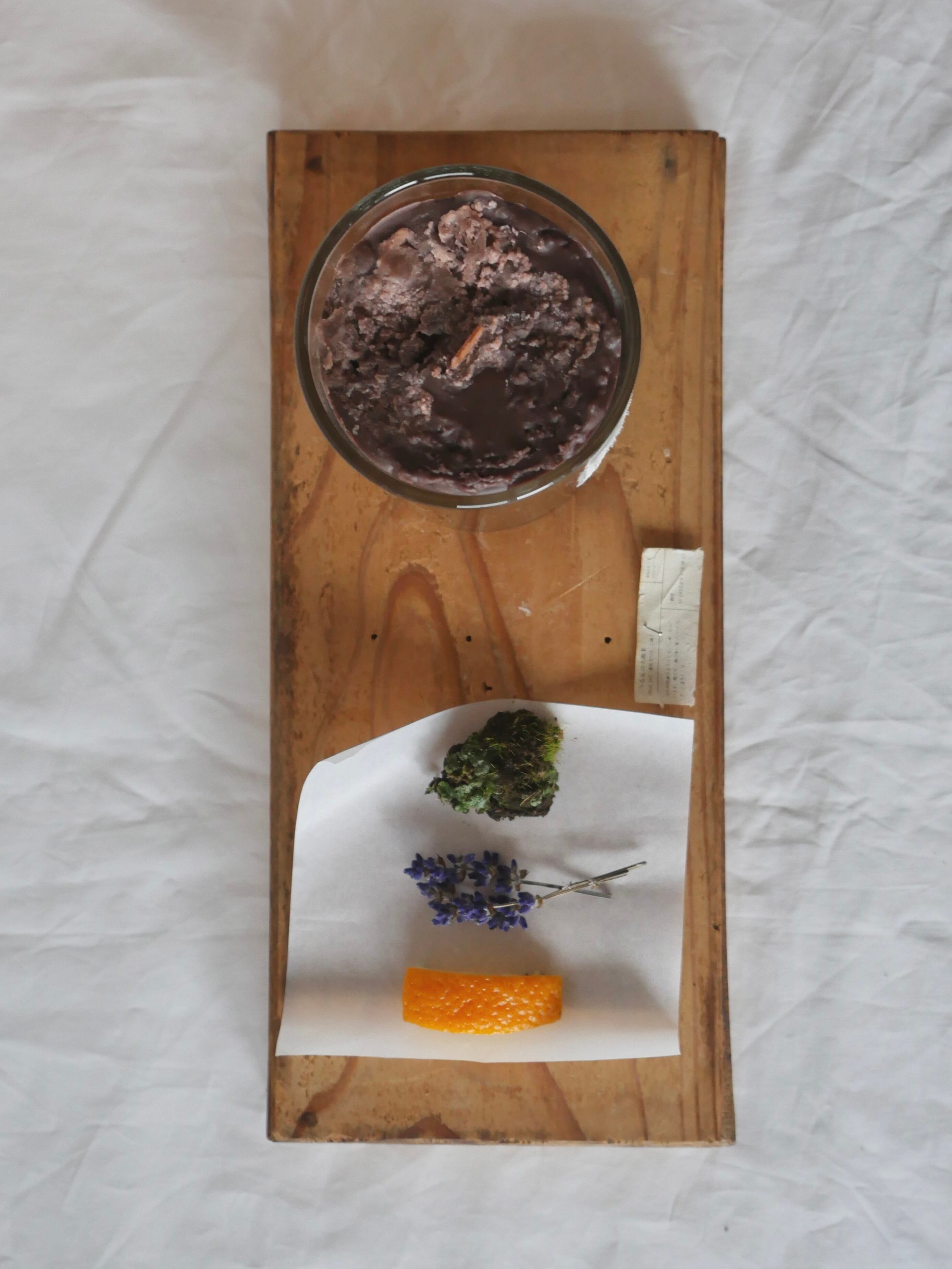 一層目はオレンジとラベンダーの華やかで果実味あるニュアンスとフランキンセンスの深く穏やかなニュアンスを感じられる香りから、